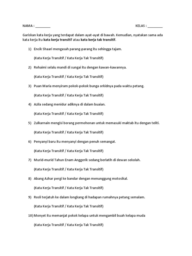 Soalan Kata Kerja Aktif Tak Transitif Pdf